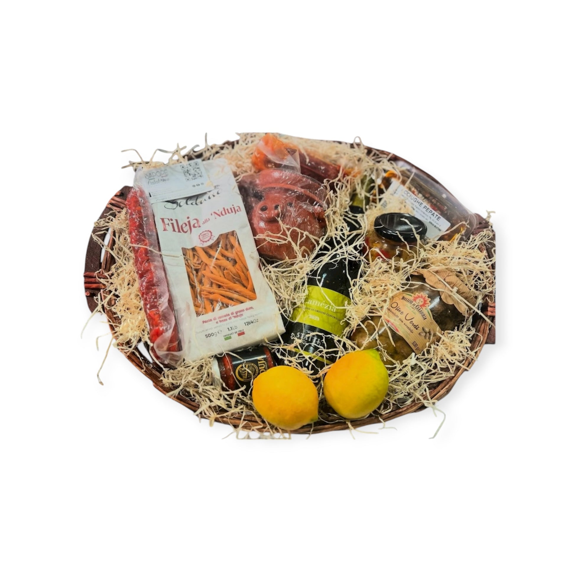 Nella nostra CESTA REGALO L disponibile tutto l’anno abbiamo raccolto quelle che sono le specialità chiave della Calabria con prodotti tassativamente realizzati in questa terra.